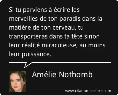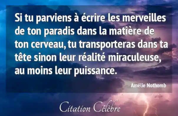 Si tu parviens à écrire les merveilles de ton paradis dans la matière de ton cerveau, tu transporteras dans ta tête sinon leur réalité miraculeuse, au moins leur puissance.