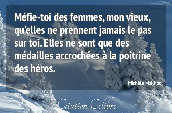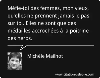 Méfie-toi des femmes, mon vieux, qu'elles ne prennent jamais le pas sur toi. Elles ne sont que des médailles accrochées à la poitrine des héros.