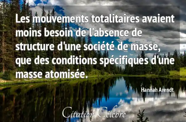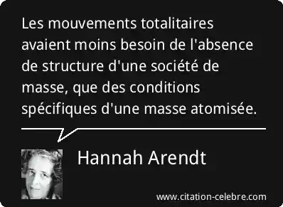Les mouvements totalitaires avaient moins besoin de l'absence de structure d'une société de masse, que des conditions spécifiques d'une masse atomisée.