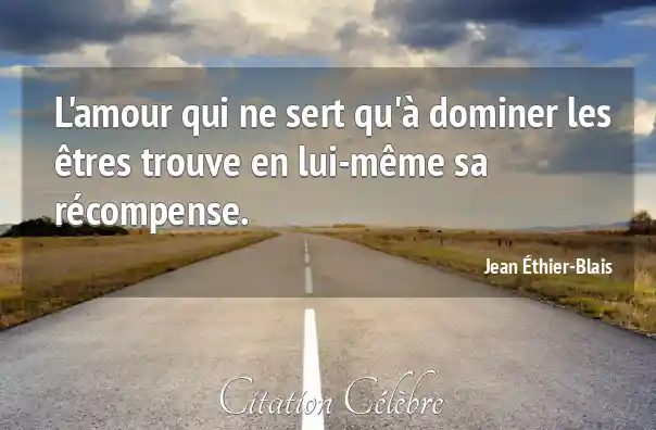 L'amour qui ne sert qu'à dominer les êtres trouve en lui-même sa récompense.