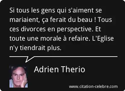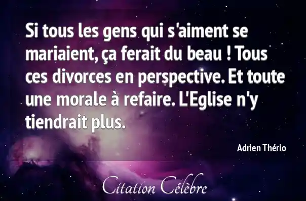 Si tous les gens qui s'aiment se mariaient, ça ferait du beau ! Tous ces divorces en perspective. Et toute une morale à refaire. L'Eglise n'y tiendrait plus.