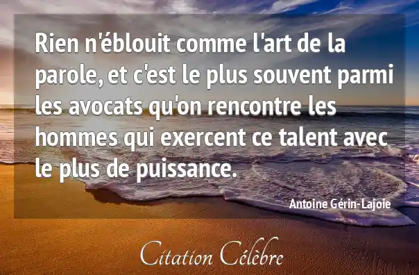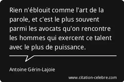 Rien n'éblouit comme l'art de la parole, et c'est le plus souvent parmi les avocats qu'on rencontre les hommes qui exercent ce talent avec le plus de puissance.