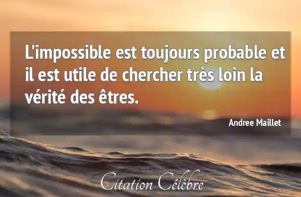 L'impossible est toujours probable et il est utile de chercher très loin la vérité des êtres.