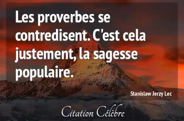 Les proverbes se contredisent. C'est cela justement, la sagesse populaire.