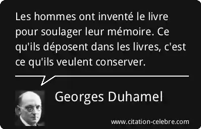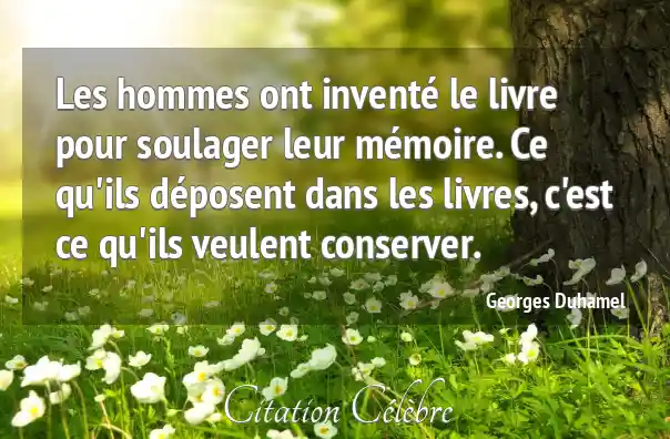Les hommes ont inventé le livre pour soulager leur mémoire. Ce qu'ils déposent dans les livres, c'est ce qu'ils veulent conserver.