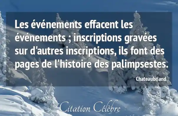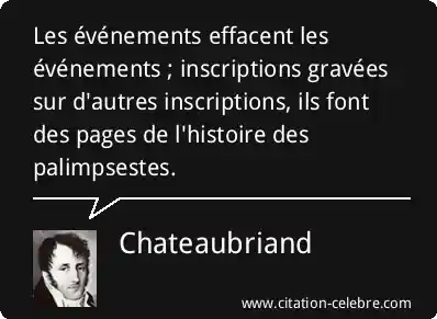 Les événements effacent les événements ; inscriptions gravées sur d'autres inscriptions, ils font des pages de l'histoire des palimpsestes.
