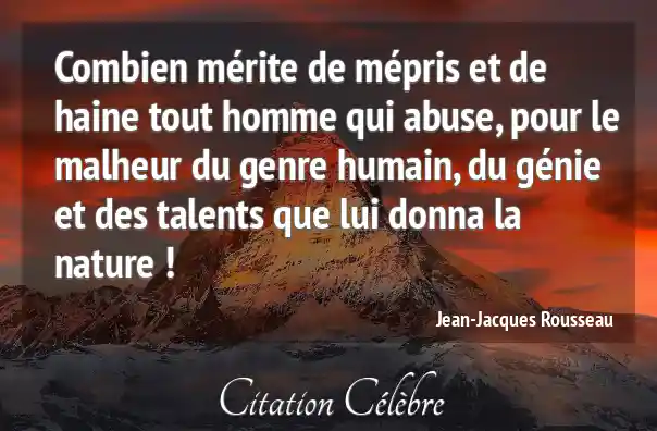 Combien mérite de mépris et de haine tout homme qui abuse, pour le malheur du genre humain, du génie et des talents que lui donna la nature !