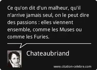 Ce qu'on dit d'un malheur, qu'il n'arrive jamais seul, on le peut dire des passions : elles viennent ensemble, comme les Muses ou comme les Furies.
