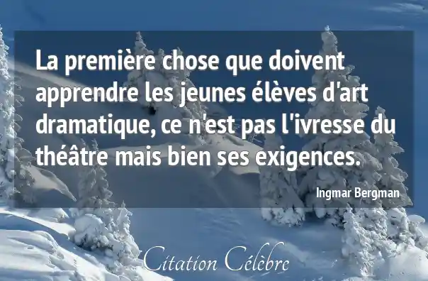 La première chose que doivent apprendre les jeunes élèves d'art dramatique, ce n'est pas l'ivresse du théâtre mais bien ses exigences.