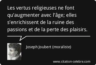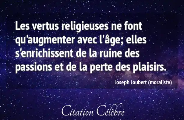 Les vertus religieuses ne font qu'augmenter avec l'âge; elles s'enrichissent de la ruine des passions et de la perte des plaisirs.