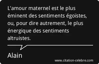 L'amour maternel est le plus éminent des sentiments égoïstes, ou, pour dire autrement, le plus énergique des sentiments altruistes.