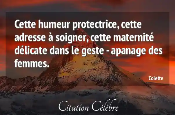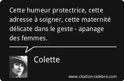 Cette humeur protectrice, cette adresse à soigner, cette maternité délicate dans le geste - apanage des femmes.