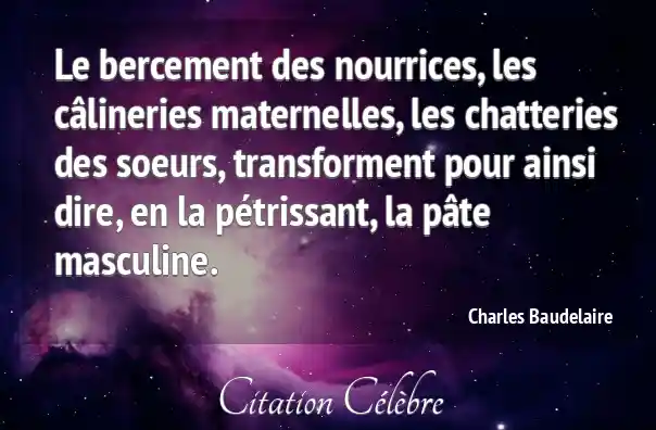 Le bercement des nourrices, les câlineries maternelles, les chatteries des soeurs, transforment pour ainsi dire, en la pétrissant, la pâte masculine.