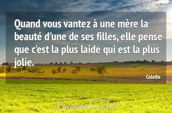 Quand vous vantez à une mère la beauté d'une de ses filles, elle pense que c'est la plus laide qui est la plus jolie.
