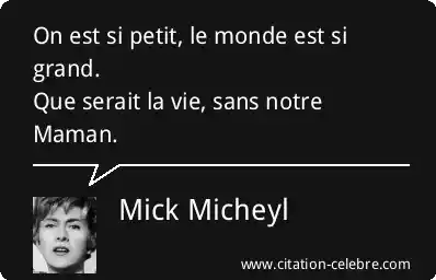 On est si petit, le monde est si grand.Que serait la vie, sans notre Maman.