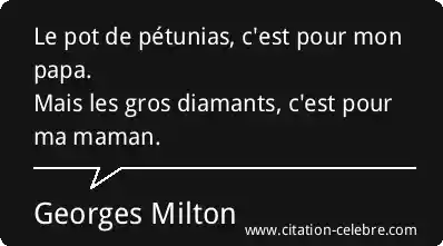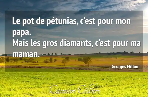 Le pot de pétunias, c'est pour mon papa.Mais les gros diamants, c'est pour ma maman.