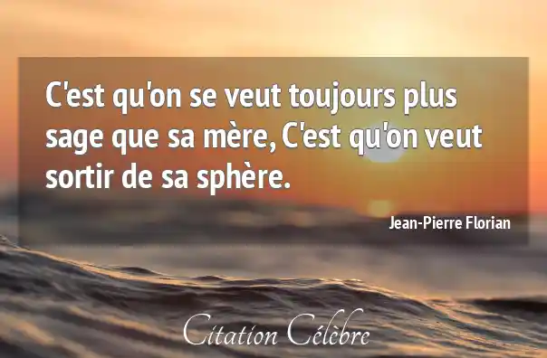 C'est qu'on se veut toujours plus sage que sa mère, C'est qu'on veut sortir de sa sphère.