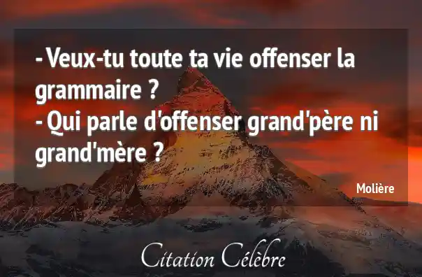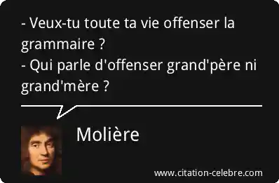 - Veux-tu toute ta vie offenser la grammaire ? - Qui parle d'offenser grand'père ni grand'mère ?