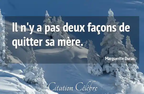 Il n'y a pas deux façons de quitter sa mère.