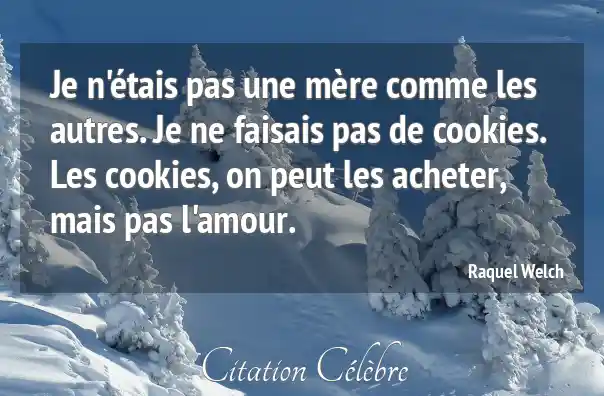 Je n'étais pas une mère comme les autres. Je ne faisais pas de cookies. Les cookies, on peut les acheter, mais pas l'amour.