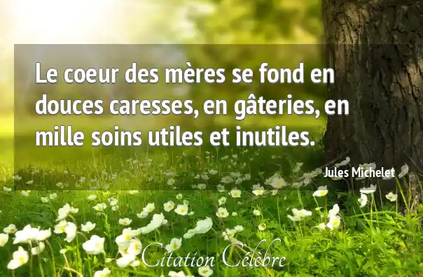 Le coeur des mères se fond en douces caresses, en gâteries, en mille soins utiles et inutiles.