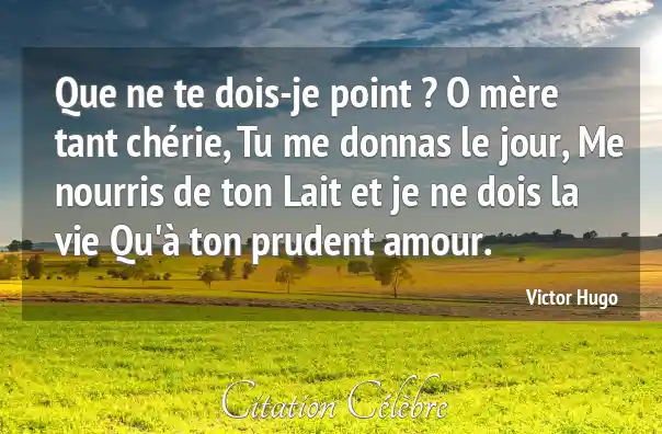 Que ne te dois-je point ? O mère tant chérie, Tu me donnas le jour, Me nourris de ton Lait et je ne dois la vie Qu'à ton prudent amour.