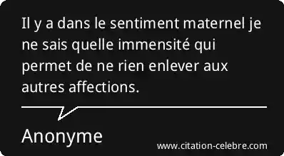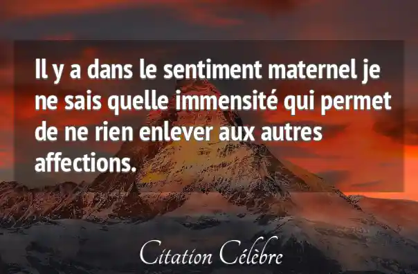 Il y a dans le sentiment maternel je ne sais quelle immensité qui permet de ne rien enlever aux autres affections.