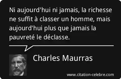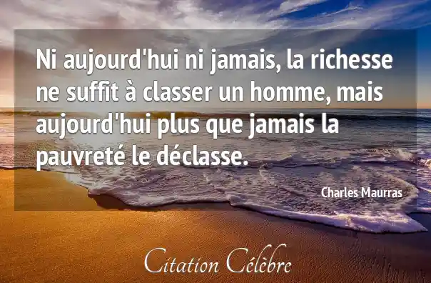 Ni aujourd'hui ni jamais, la richesse ne suffit à classer un homme, mais aujourd'hui plus que jamais la pauvreté le déclasse.