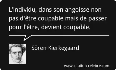 L'individu, dans son angoisse non pas d'être coupable mais de passer pour l'être, devient coupable.
