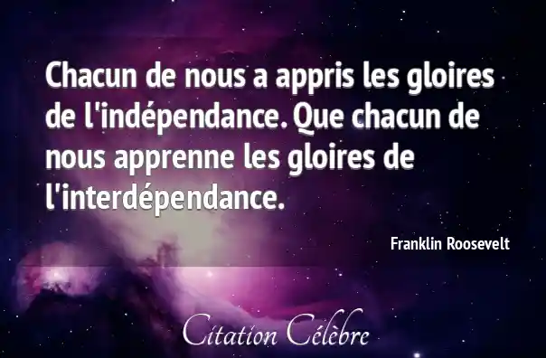 Chacun de nous a appris les gloires de l'indépendance. Que chacun de nous apprenne les gloires de l'interdépendance.