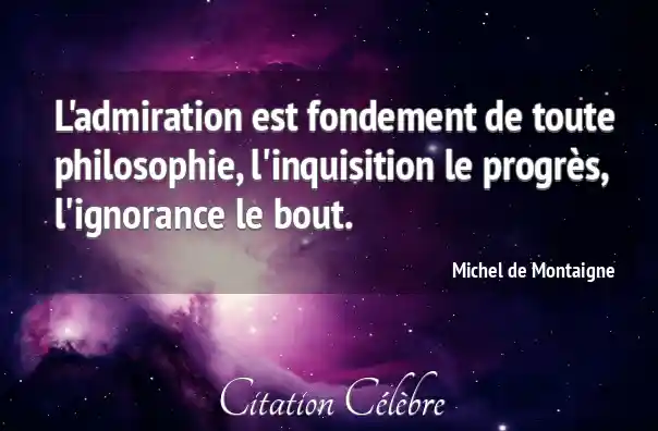 L'admiration est fondement de toute philosophie, l'inquisition le progrès, l'ignorance le bout.