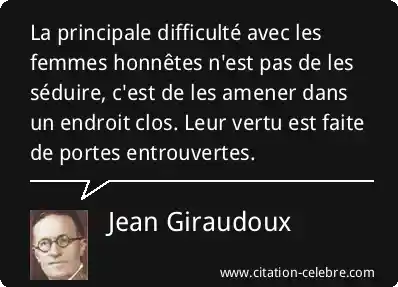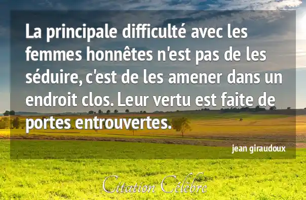 La principale difficulté avec les femmes honnêtes n'est pas de les séduire, c'est de les amener dans un endroit clos. Leur vertu est faite de portes entrouvertes.