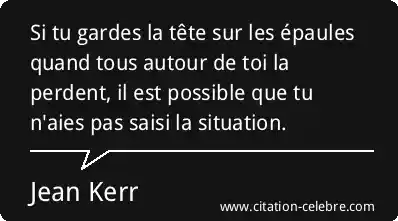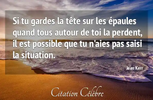 Si tu gardes la tête sur les épaules quand tous autour de toi la perdent, il est possible que tu n'aies pas saisi la situation.