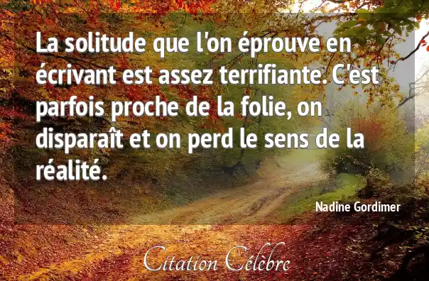 La solitude que l'on éprouve en écrivant est assez terrifiante. C'est parfois proche de la folie, on disparaît et on perd le sens de la réalité.