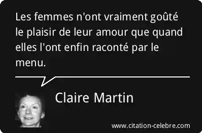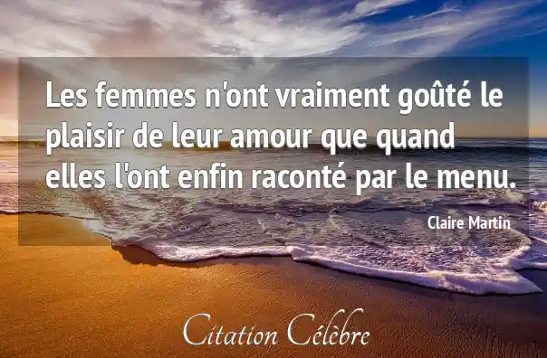 Les femmes n'ont vraiment goûté le plaisir de leur amour que quand elles l'ont enfin raconté par le menu.
