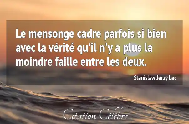 Le mensonge cadre parfois si bien avec la vérité qu'il n'y a plus la moindre faille entre les deux.