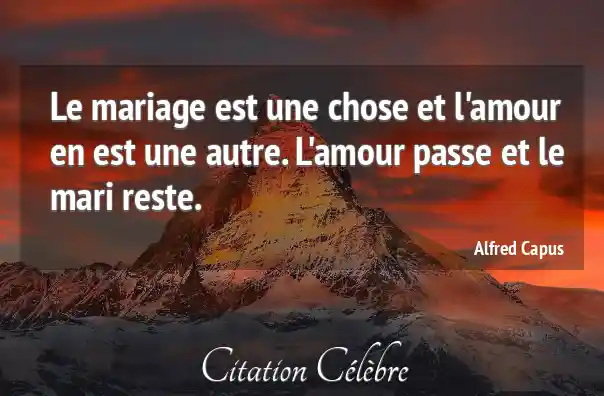Le mariage est une chose et l'amour en est une autre. L'amour passe et le mari reste.
