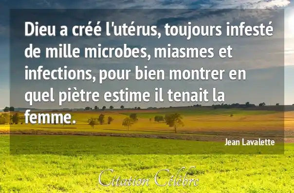 Dieu a créé l'utérus, toujours infesté de mille microbes, miasmes et infections, pour bien montrer en quel piètre estime il tenait la femme.