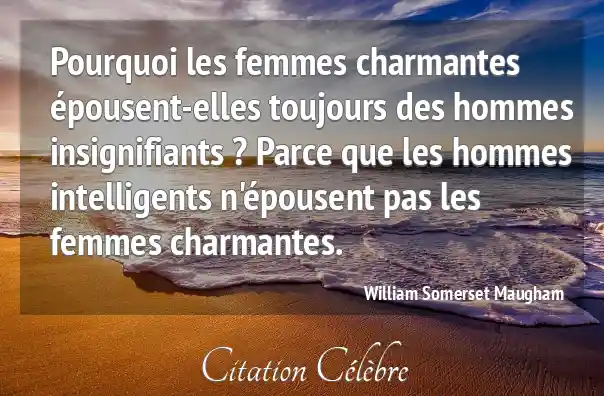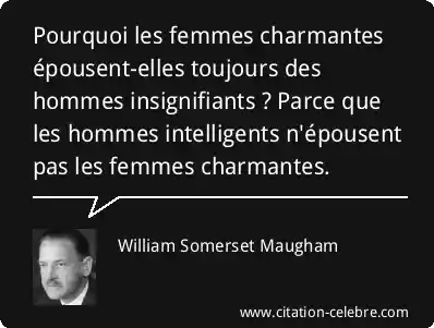 Pourquoi les femmes charmantes épousent-elles toujours des hommes insignifiants ? Parce que les hommes intelligents n'épousent pas les femmes charmantes.