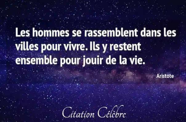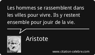 Les hommes se rassemblent dans les villes pour vivre. Ils y restent ensemble pour jouir de la vie.