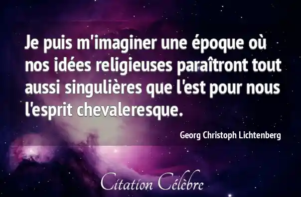 Je puis m'imaginer une époque où nos idées religieuses paraîtront tout aussi singulières que l'est pour nous l'esprit chevaleresque.