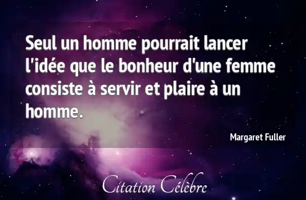 Seul un homme pourrait lancer l'idée que le bonheur d'une femme consiste à servir et plaire à un homme.
