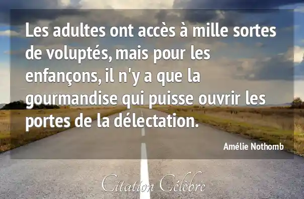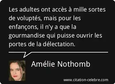 Les adultes ont accès à mille sortes de voluptés, mais pour les enfançons, il n'y a que la gourmandise qui puisse ouvrir les portes de la délectation.