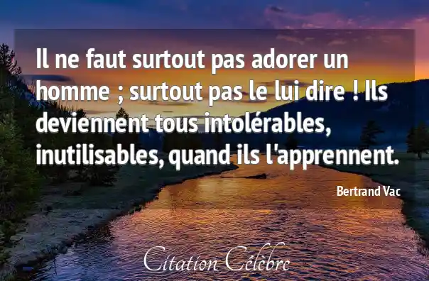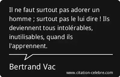Il ne faut surtout pas adorer un homme ; surtout pas le lui dire ! Ils deviennent tous intolérables, inutilisables, quand ils l'apprennent.