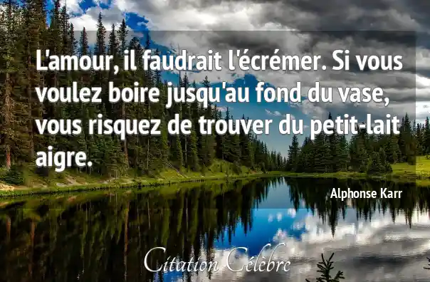 L'amour, il faudrait l'écrémer. Si vous voulez boire jusqu'au fond du vase, vous risquez de trouver du petit-lait aigre.