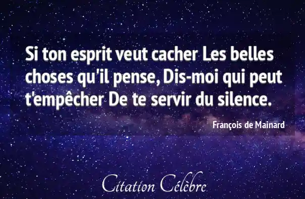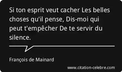 Si ton esprit veut cacher Les belles choses qu'il pense, Dis-moi qui peut t'empêcher De te servir du silence.