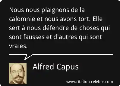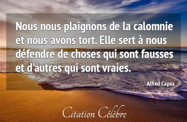 Nous nous plaignons de la calomnie et nous avons tort. Elle sert à nous défendre de choses qui sont fausses et d'autres qui sont vraies.