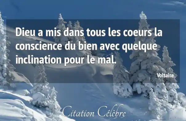 Dieu a mis dans tous les coeurs la conscience du bien avec quelque inclination pour le mal.