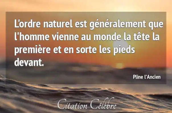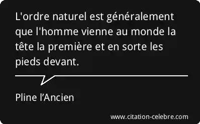 L'ordre naturel est généralement que l'homme vienne au monde la tête la première et en sorte les pieds devant.