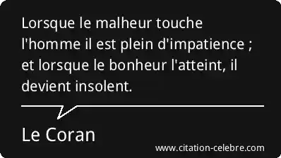 Lorsque le malheur touche l'homme il est plein d'impatience ; et lorsque le bonheur l'atteint, il devient insolent.